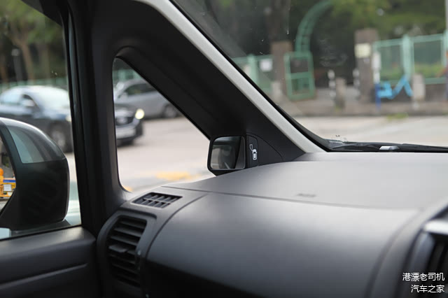 这个小镜子设计的别出心裁,可以看到左前方盲区的情况,就像旁边那个白色指示牌显示的一样。