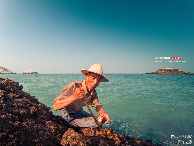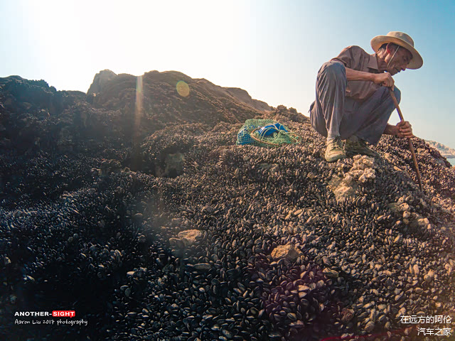大爷倒是不言不语,在那里弯腰低头默默采着贻贝,从远处看去,这就像他世世代代耕种的土地。