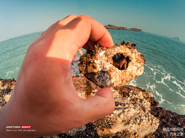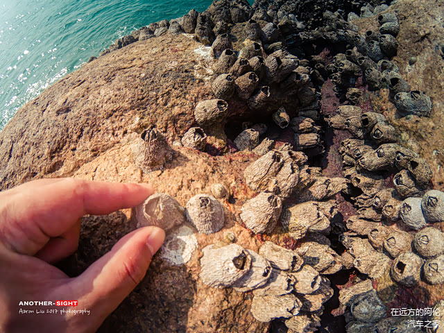 这家伙外壳相当硬,确切来说是很硬,并且很难抠下来,我死命掰下一个,尼玛掰掉就挂了的节奏,因为它的下半身跟礁石长在一起了...