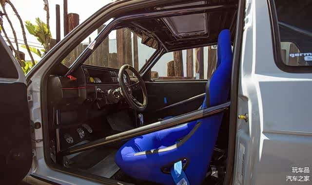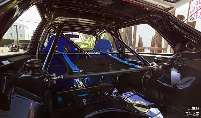 在内饰上焊装了一个防滚架,用来保证车手安全。为了凸显竞技风格,将原厂的格纹座椅拆除,换上CobraMonaco座椅和Crow Racing安全带,以及一个轻量化的MOMO方向盘!