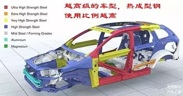 一般越高级的汽车,热成型钢用的越多,车身越坚固。汽车的A级、B级、C级、D级,还真不仅仅是车身的大小之分,使用的材料上也有很大的差别。比如以安全著称的沃尔沃,车身上的热成型钢使用比例就非常高;还有法国的雪铁龙C5、德国的奔驰、宝马、奥迪等等。这些高级别的车型都大量的使用了热成型钢,而日系车用量相对较少。在国产车中,奇瑞汽车热成型钢使用的比例是最高的,而有些车型全车都没有使用热成型钢。