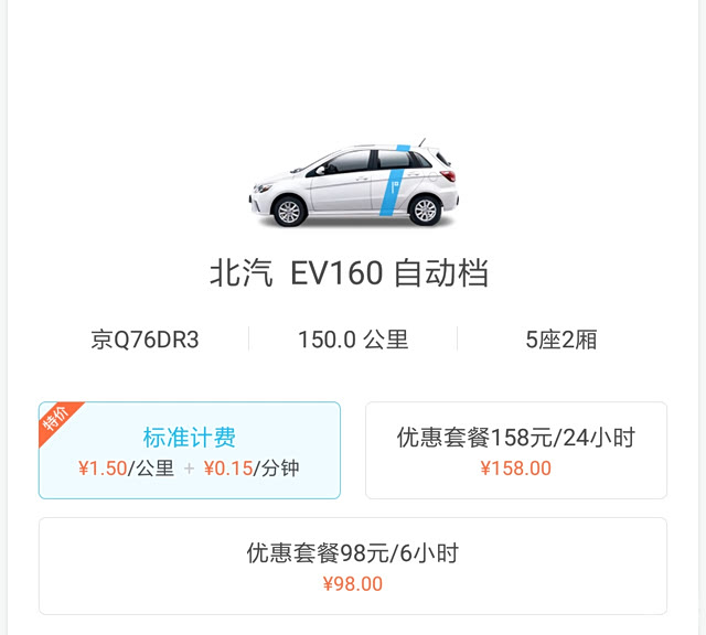 有车出行的车型种类最为丰富,从价格上看,在平台上租一辆i3试一试还是相当不错的。