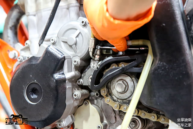 离合器下泵排气过程中遭遇了阻碍,由于Freeride 350在国内保有量太小,春风动力没有为经销商配备它的离合下泵排气专用接头,因此无法使用负压吸引设备排气,只得使用最原始的手动方法排气