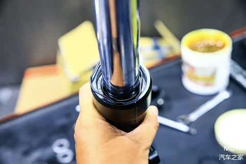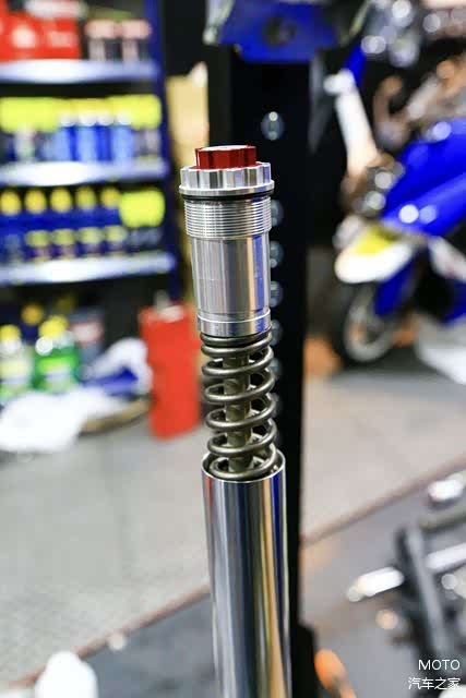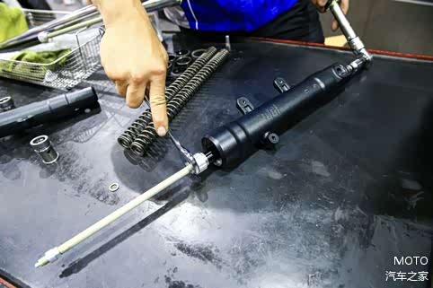 接着就可将前叉弹簧放入,并准备将顶盖与轴心结合。