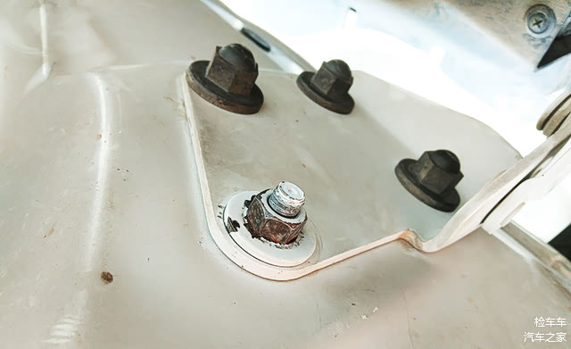 机盖有过拆卸和钣金痕迹。检查前杠,前防撞梁,水箱均没发现问题,应该是被什么东西砸了机盖。