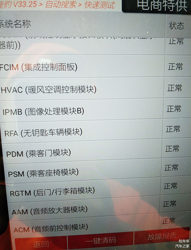 OBD行车电脑检测,故障码偏多,一键清除后,断电,再重新启动发动机进行检测,一切正常,没有发现故障码存在。故障码并不可怕,只要能清除掉,基本没问题,有时候日常使用过程中产生的功能参数超过传感器或者电脑的标准,行车电脑就会自动记忆故障码,比如车辆涉水后很容易产生ABS故障码,这个无大碍,不用担心。如果存有永久故障码无法清除,那就该去4S店维修了。