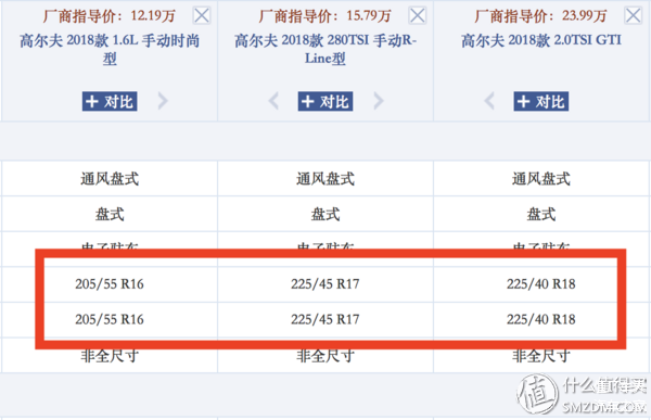 比如18款高尔夫,你如果购买的是低配,那么轮胎规格205/55 R16,可以考虑升级为高配的225/45 R17甚至GTi的225/40 R18都可以。当然,R后面的内径换了,4个轮毂也得跟着换了。
