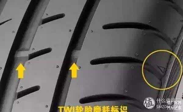 如果花纹和箭头所指的位置启平了,那就该换胎了