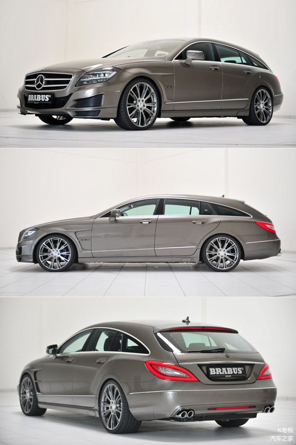4.7升V8汽油动力的CLS 500了; Brabus B50动力套件将其最大马力从402hp提升为493hp,峰值扭力更提升到73.42kg-m,此套件同时能将电子速限移除,使得这辆「旅行车」拥有300公里每小时的极速表现。