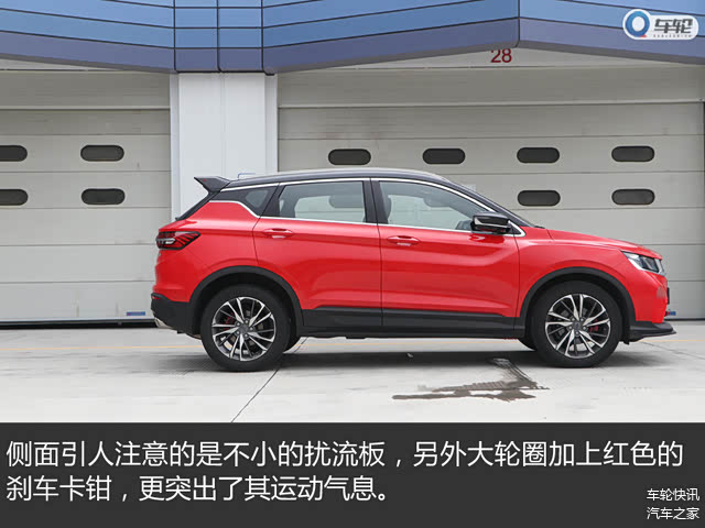 作为专门针对年轻消费群体量身打造的车型,首先高颜值是必须的。从外观上看缤越的设计是比较激进的,就拿前脸来说,不规则的进气格栅和车标全部黑化,外部进行红色点缀,更显运动。
