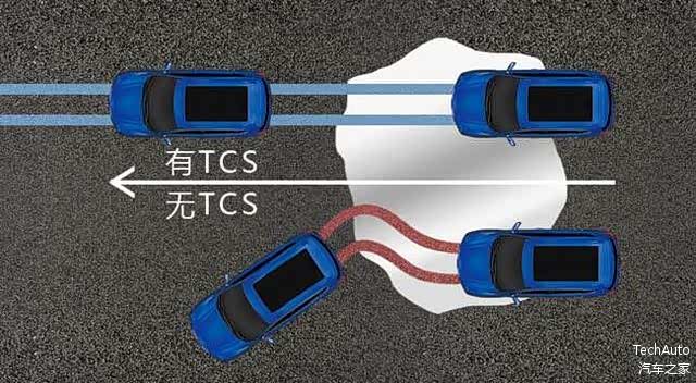 TCS系统,它是牵引力控制系统(Traction Control System)的简称。TCS依靠电子传感器探测到从动轮速度低于驱动轮时(这是打滑的特征),就会发出一个信号,调节点火时间、减小气门开度、减小油门、降挡或制动车轮,从而使车轮不再打滑。