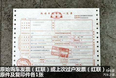 4、原始购车发票红联(或上次过户发票红联)原件及复印件各1张;