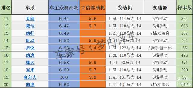 而在11-20这个区间,大众系的油耗就更加的突出了。10款车型只有位居第11位的别克英朗和位居第15位的铃木启悦不是德系车,其它8款车型都是德系的。其中,在我们国内销量比较好的车型是位居第12位大众捷达和第16位大众朗逸。位居第18的大众宝来和第19位的大众高尔夫也是受到了一些人的青睐。
