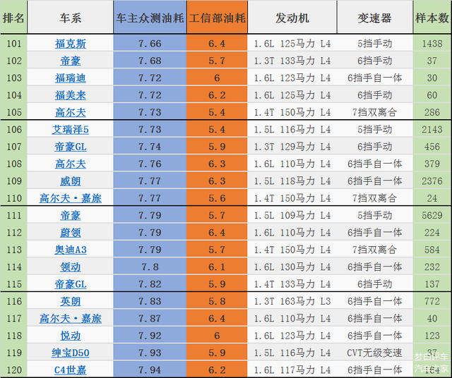 导读:最新A级车“真实油耗”排行榜:大众朗逸第16,你的爱车第几?