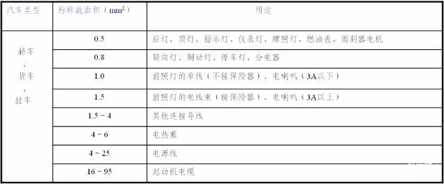 下表为汽车12V电系主要电路导线截面积选择的推荐值 。