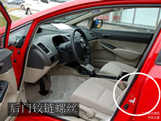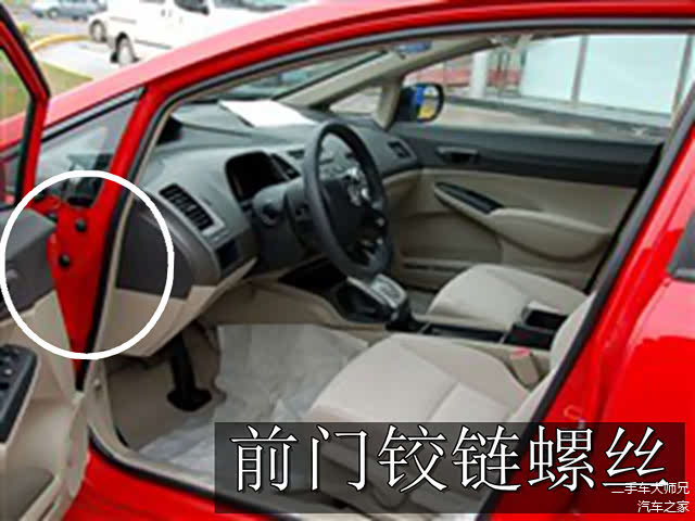 所以这个门铰链螺丝就成为了关键点!如果你发现有一扇门的螺丝有拆装的历史,那么这辆车就有50%的可能是一辆事故车(你愿意来一场豪赌吗?)