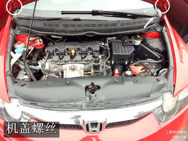 【如果一辆车的机盖螺丝出现了拆装的现象就能说明:这辆车的前面发生过交通事故(具体事故大小需要进一步深入检测),导致了机盖修复或更换,所以会对机盖进行拆装!如果你有买思域的想法,这里就可以把图片保存下来,和你要买的车做一个对比!】