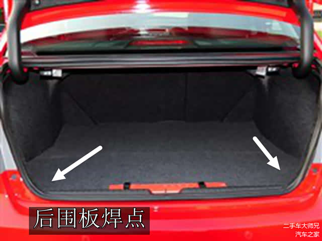 但是如果你发现了这个位置有拆装痕迹,那么我们就要进一步检查后围板,备胎坑位置是否有损伤!