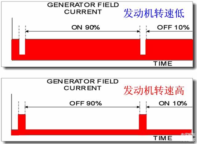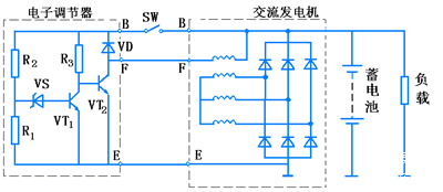 集成电路电压调节器利用改变磁场电流的占空比,来改变发电机的输出电压。