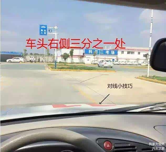 1、进入侧方停车项目时,先调整边线30cm,观察雨刷去最高点或者车头三分之一与路边线重合,即是车身与边线30cm的点位。