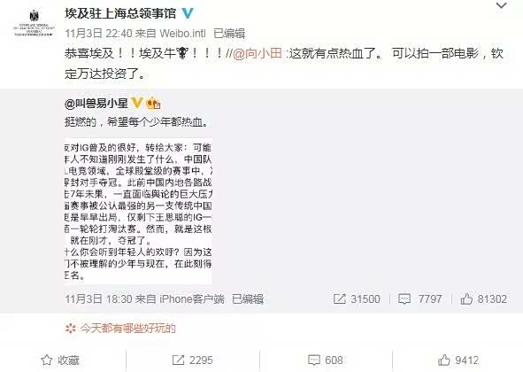 昨天下午朋友圈、微博又被刷爆了,原因是英雄联盟S8全球总决赛,IG成功以3:0击溃FNC拿到了S8冠军,冲鸭!而“埃及”其实是“IG”的谐音,埃及驻上海总领事馆还转发了一条相关微博,皮一下很开森