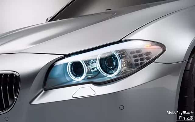 在F10/F18 5系上,宝马第一次使用白色的天使眼灯圈,采用LED光源,直接从灯圈下面点亮。这样的设计使得天使眼在正午的阳光下也清晰可见。