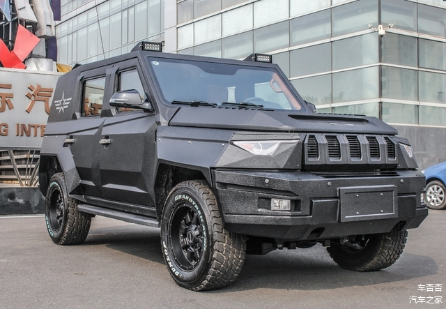 在外观上,捍卫者与BJ80近似,不过原车所有的金属蒙皮都被更换为了2.3mm的钢板,整车质量2.5吨左右。有这层防护在,一般的打砸是足以应付的了,几乎不需要任何的后期升级。不过这是作为民用版本而言,军警版本还会进一步加强装甲硬度。