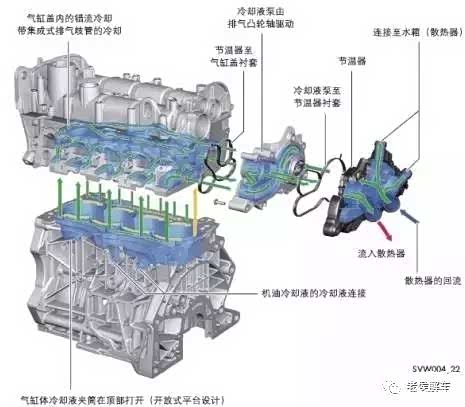 双节温器控制双循环冷却系统,并保留EA111发动机的缸盖横流冷却的方式。