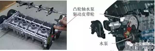 冷却水泵由凸轮轴后端通过皮带驱动,该皮带也是长寿命类型。