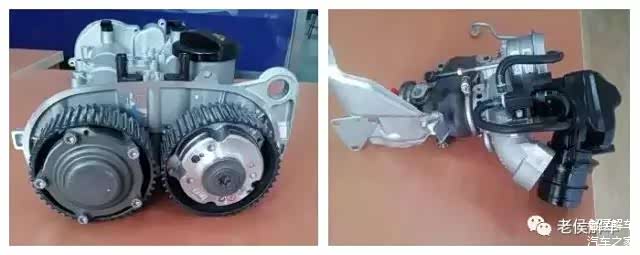 由齿形皮带带动曲轴和凸轮轴转动,进排气凸轮轴上都装有VVT进行调节,发动机带有废弃涡轮增压器。