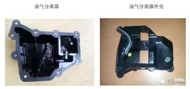 气体从曲轴箱进入机油分离器。大油滴首先被粗分离器中的隔板和涡流管道分离。然后,微小的油滴通过细分离器中的隔板除去。