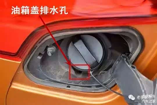 有些车辆油箱口开口向上,下部就容易积水。为了排水,工程师就设计了一个排水孔。由于车辆在室外使用,因此风沙等会通过油箱盖的缝隙,积存在油箱盖周围。如果这个排水孔被堵住,在雨天就会积存水,潮湿的环境对金属制作的油箱盖、车门板等形成威胁,所以,这个地方也需要及时检查和清理。