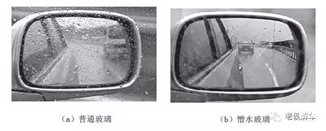 汽车在雨天行驶时,雨水会沾附在玻璃上而影响驾驶员的视线。虽然雨刮可以刮去前风挡玻璃上的雨水,但刮刷范围有限,且门玻璃和后风挡玻璃等无法清洁。由此,憎水玻璃应运而生。使玻璃表面具有憎水性能的方法有两种。一种是在玻璃表面涂覆烷氧基硅盐类、烷氧基聚合物、有机聚合物、石蜡或氟素化合物等低表面能物质,使玻璃表面具有较低的表面自由能。另外一种是使玻璃表面具有纳米级的微观凸凹表面。在憎水玻璃表面,水滴与玻璃的接触角能够达到110°以上,因而表现出非常好的憎水效果。