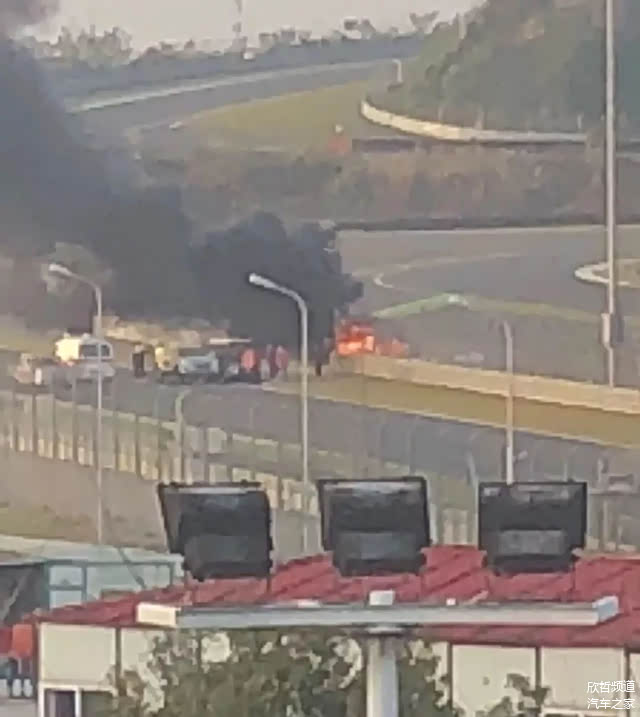 15点42分:赛道工作人员到达事故现场启用灭火器尝试灭火,经过14分钟的奋力灭火,火源始终无法扑灭;