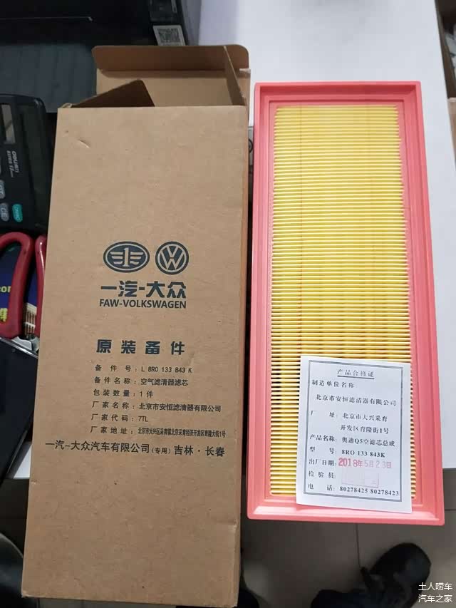 奥迪服务在进来的改进版的油气分离器,带AF的,就是目前服务站的最新版本,据说分离效率比之前的型号要强。
