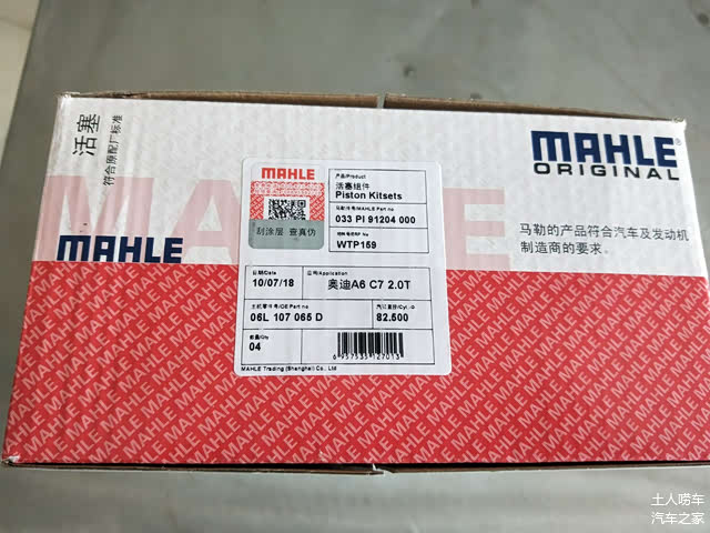 首先是活塞。之前在烧机油分析的篇章中说了,既然要大修,就要换成改进版的活塞。第二代EA888 2.0T原厂活塞由马勒和KS两个供应商,这次老板给我选用的是马勒代工的,自己买过滤清器的应该都知道马勒,应该第一次看到马勒的活塞吧。