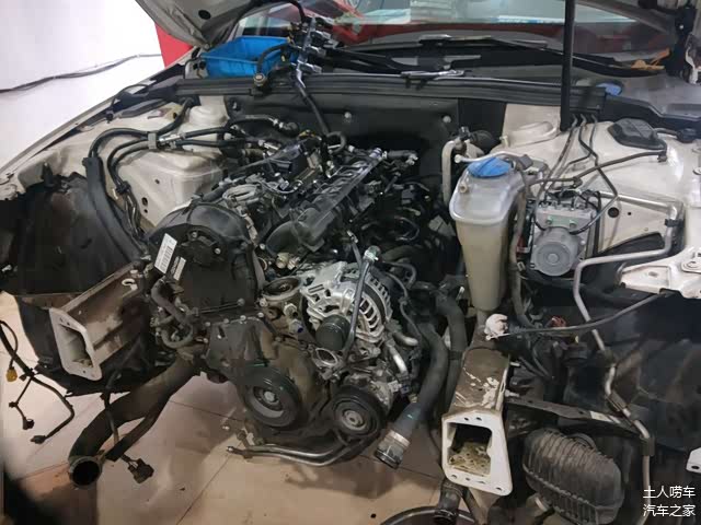大约拆了一个多小时,发动机已经被抬下来,进一步分解。