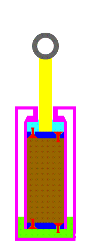 减震的结构相对弹簧要复杂一些,在其设计中有两大难点:一是油封的可靠性,二是如何与弹簧匹配得到一个较为优化的匹配结果。