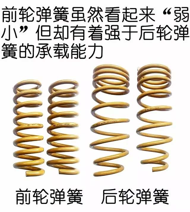 三:常说的中载/重载弹簧,往往比原厂弹簧要硬一些。这个有利有弊,支撑性能提高了,但会减小原车的悬挂行程长度,这个对越野来说是不利的。很多改装弹簧/减震是为了跑比赛而设计的,必须要硬一些,但是对于日常使用并不是很适合,所以购买前一定要搞清楚自己的需求。
