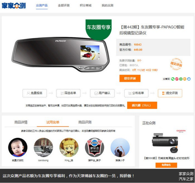 嗨,大家好!我还是我,帅气的津漂小子。经过我坚持不懈的参加众测,终于在50期之后的车友圈专享活动中又一次获得众测机会。这一期与众不同,是家家众测与车友圈联合举办的一期,只要你了解众测规则,你要你经常活跃在车友圈,大奖就会到你家~~