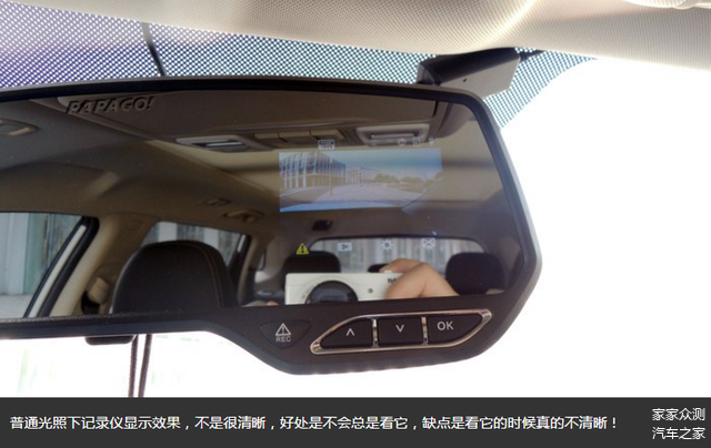 虽然是2015年出厂的,但分辨率和防眩光功能还是很实用的,夜间开车,后视镜亮度要比原车的低,后车开远光的话,确实不会刺眼,但较暗的亮度看不清后面是否有非机动车,是否有行人,总感觉心里不踏实。关于 应急报警,初始化时需要调高灵敏度,我使用的是中度,在车速100km/h的时候急刹车,ESP介入,但记录仪并没有报警。当车速30km/h压上停车挡的时候,应急报警介入。经过反复测试得出结论,PAPAGO记录仪应急报警功能正常,建议将应急报警调至高度灵敏。