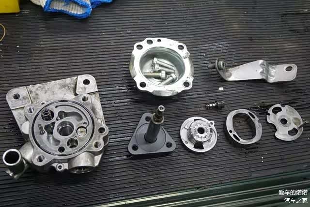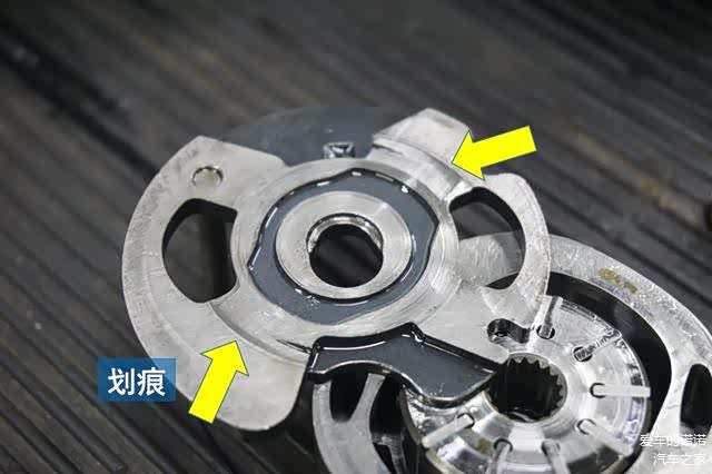 为了确诊,我们把助力泵拆下来进行了分解。实际状况也验证了我们的猜想,助力泵内部的主要活动部件都出现了明显的磨损划痕。