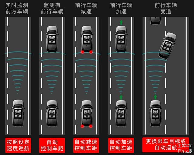 王者今天要为虎友介绍的ACC,是路虎核心的高科技之一,路虎揽胜ACC的中文全名是自适应巡航控制系统,通过名字我们能简单的了解这个配置的作用,它是巡航控制技术升级而来的智能化的自动控制系统。是集巡航控制、排队辅助、前向警示、智能紧急制动、主动式安全保护功能于一体的驾驶辅助系统。