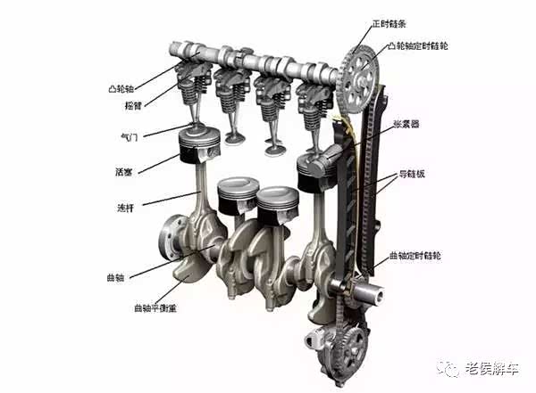 上图是一个比较典型的轿车发动机配气机构示意图。
