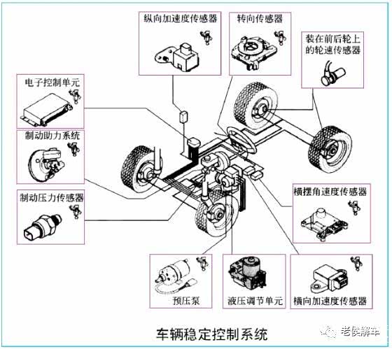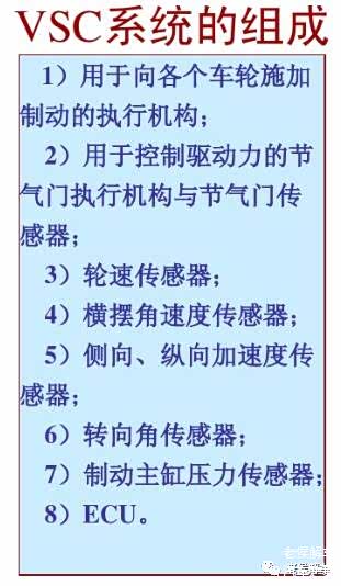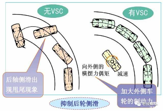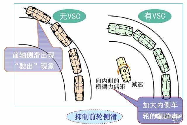 基本工作原理是:在大侧向加速度、大侧偏角的极限工况下,利用左右两侧制动力之差产生的横摆力偶矩来防止出现难以控制的侧滑现象。