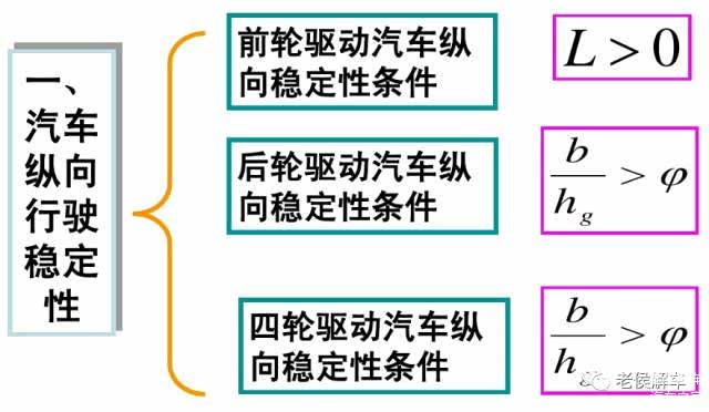 可以看出,要想汽车具有良好的纵向稳定性,就要尽可能的降低汽车的重心位置,并且前轮驱动的汽车的纵向稳定性最好。