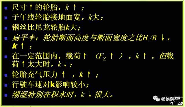 在侧向力一定的条件下,要求侧偏刚度越大越好。对侧偏刚度K的影响因素如下图: