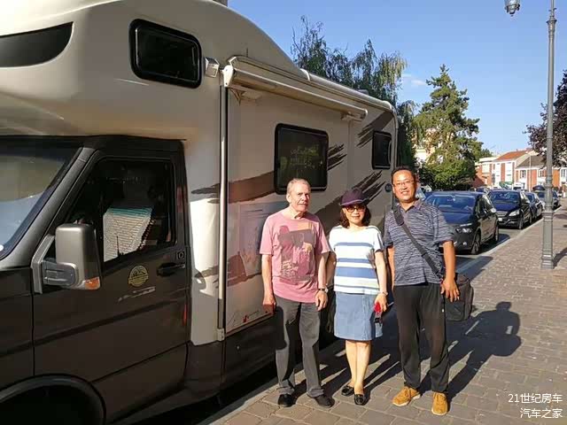 当我游览完兰斯大教堂回到车旁正准备离开时,发现有位法国男士和中国女士在观看我车的行驶路线。法国男士一开口就让我吃惊,他竟然用流利的汉语问我,你是从中国来的?我立即回答是的,然后我们做了自我介绍,原来男士是保罗先生,兰斯本地人,家就住在距兰斯大教堂旁不足百米的位置,从小在这里长大,熟悉这里的一草一木。女士是来自上海的浦大姐。保罗先生看到来自中国的房车,于是喊来浦大姐。这个场景一定不能少了合影留念。经过交流还知道保罗先生退休前是酩悦香槟的员工。