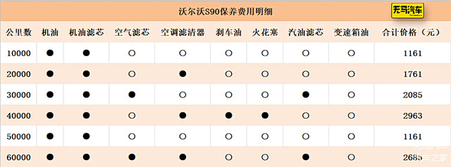 所以全部费用按最少的算,逍客每年固定的养车成本是3938.7+14140+12115=30193.7元,平均每个月是2516.14元。这是在没算停车费、违章费、洗车费、高速费等等的情况下,这些开销因人而异,不能一概而论。首先,沃尔沃S90的保养费用跟BBA相比在同一水平线上。之前我们做过A6L的养车成本是每个月2800元,S90在综合费用上还是有优势的。