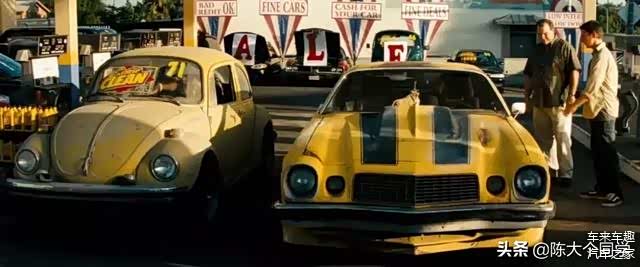 这张图很有意思,左边是刚上映的《大黄蜂》独立电影中大黄蜂的汽车形态大众 甲壳虫,而右边则是《变形金刚》中首次出场的大黄蜂汽车形态第二代科迈罗(由于我还没看《大黄蜂》所以独立电影中的车型咱以后再聊)